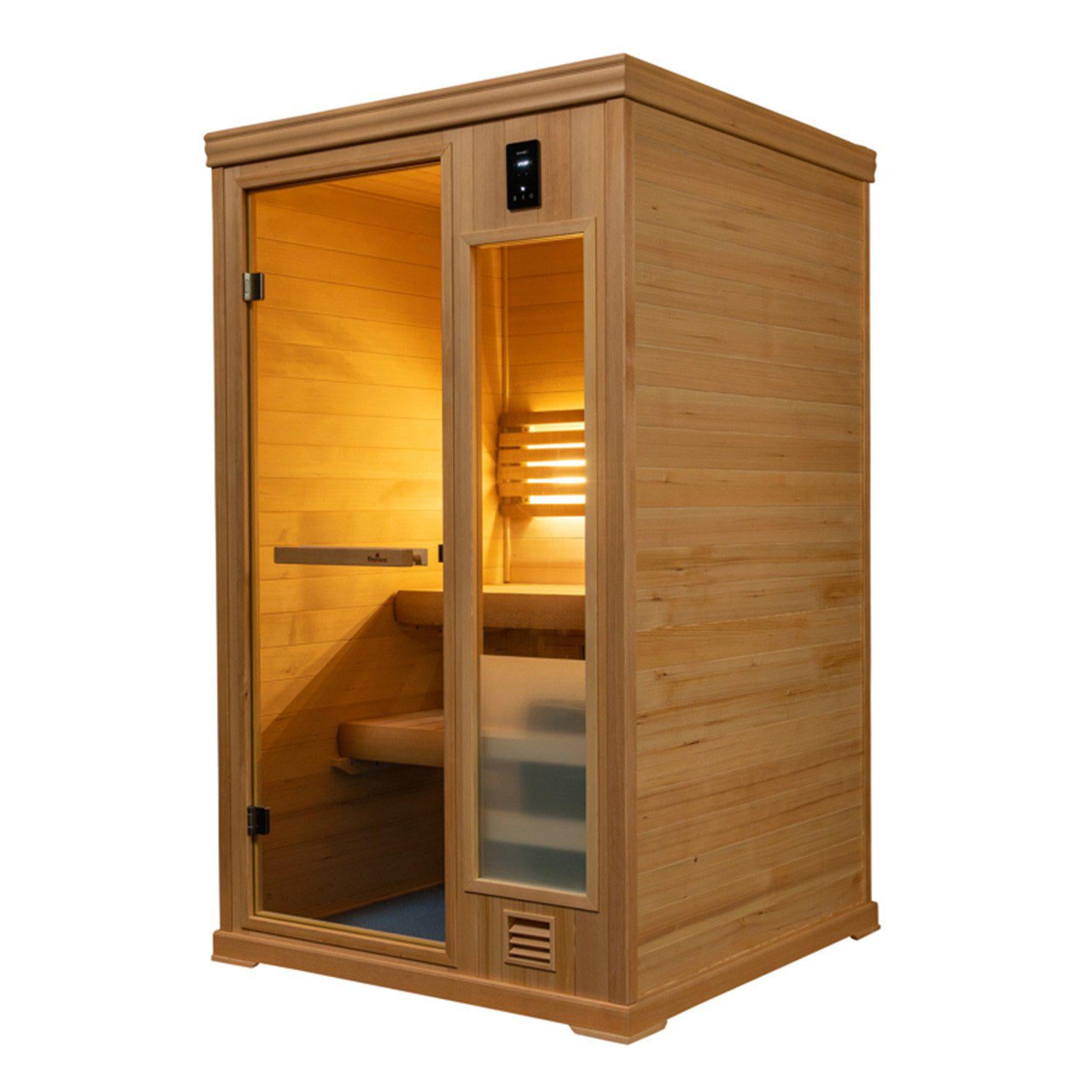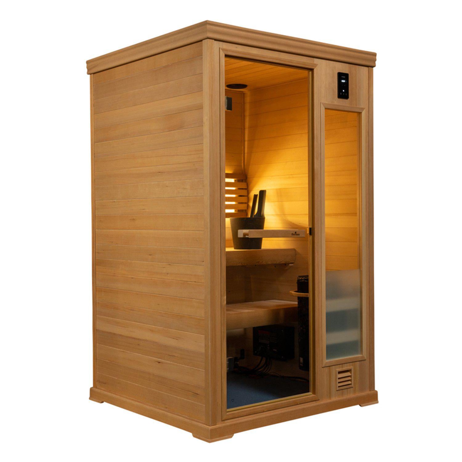 - Canadian Hemlock Inside & Out: Responsibly harvested sauna wood sealed with bio-friendly furniture grade finish.