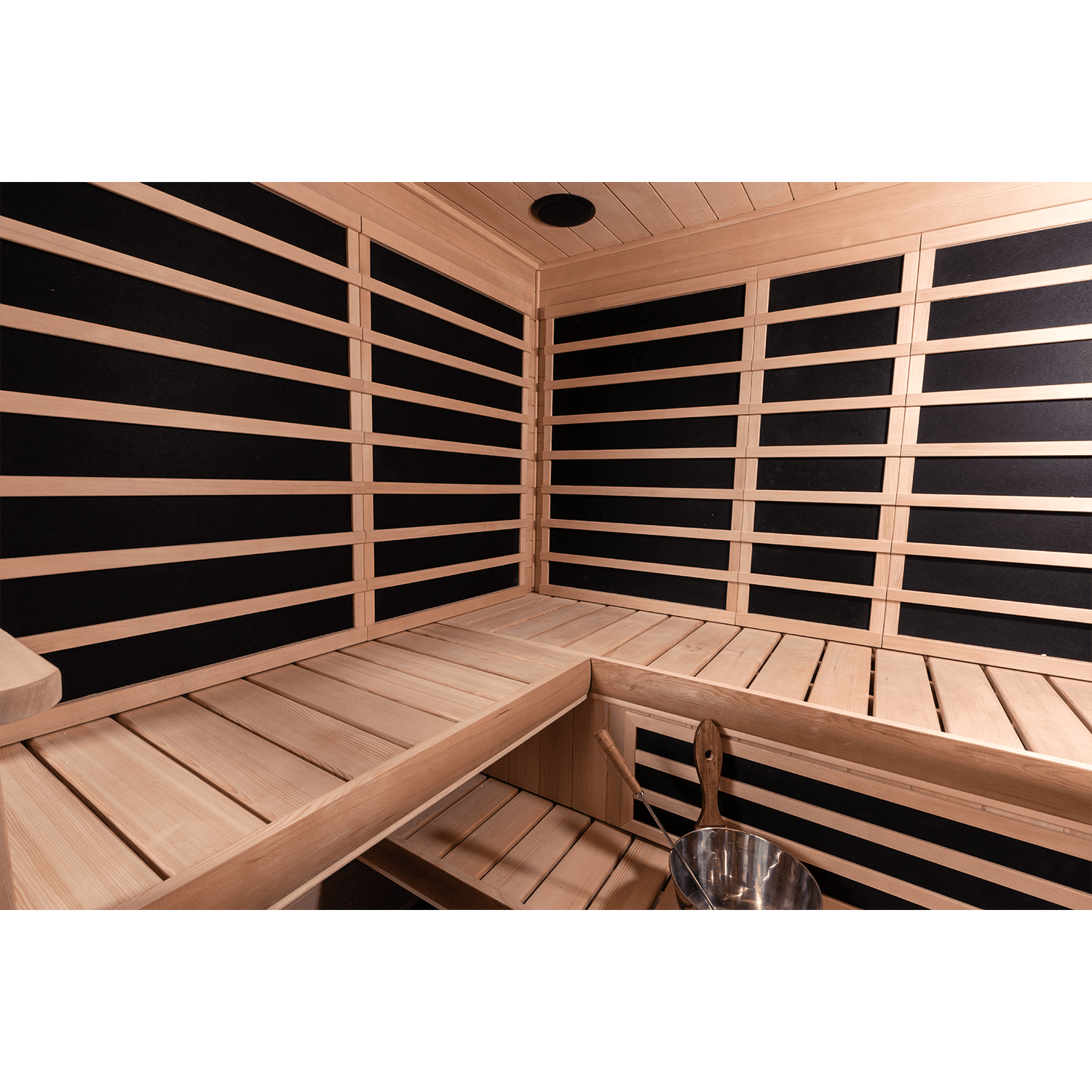 - Canadian Hemlock Inside & Out: Responsibly harvested sauna wood sealed with bio-friendly furniture grade finish.