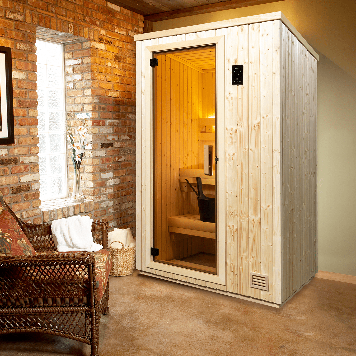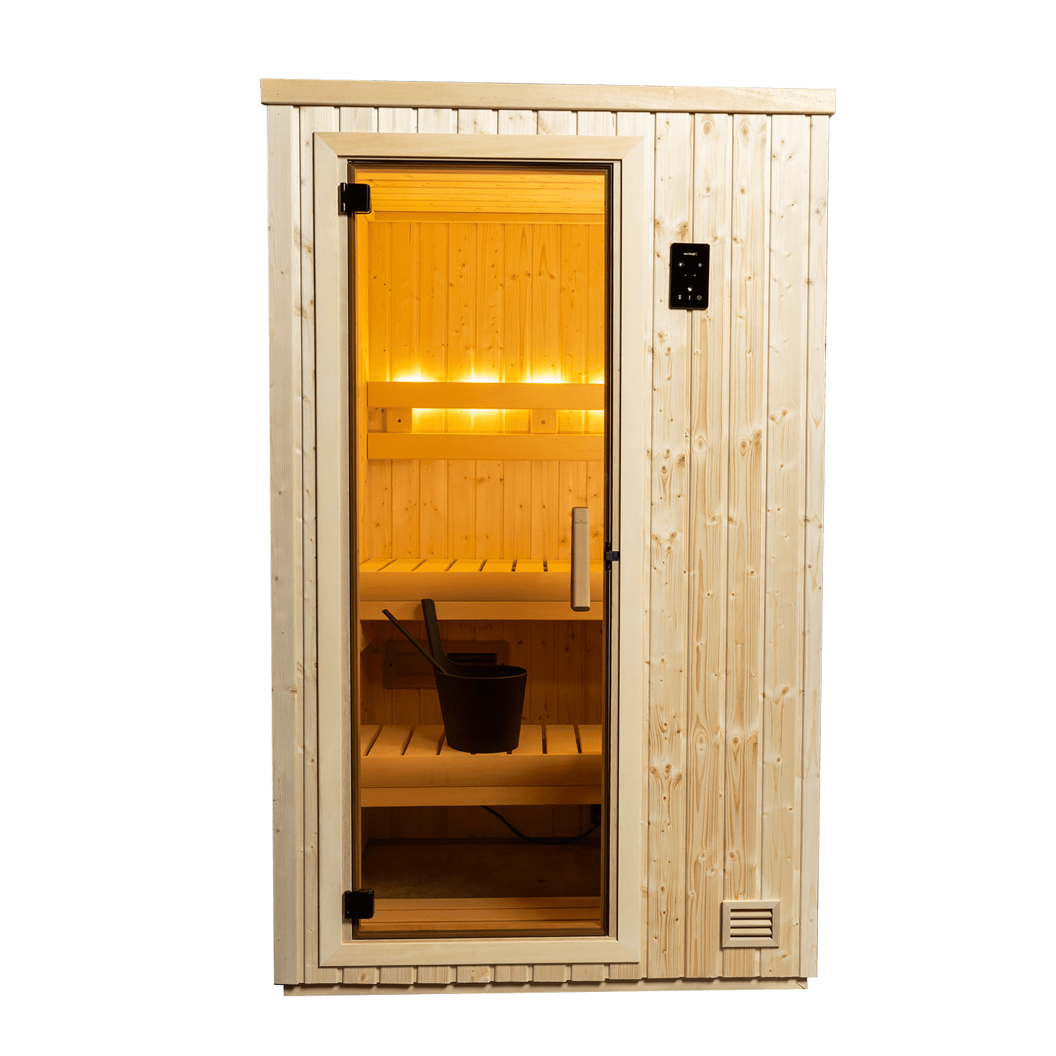 Superior free-standing sauna for when space is limited. The small footprint of the NorthStar 44 creates a compact, yet powerful sauna for 1 person (or 2 people ready to get cozy). Featuring Nordic White Spruce paneling inside and out, bring authentic Finnish sauna home to your master bath, spare bedroom, basement living room, gym, or wherever you have an available 36 square feet.