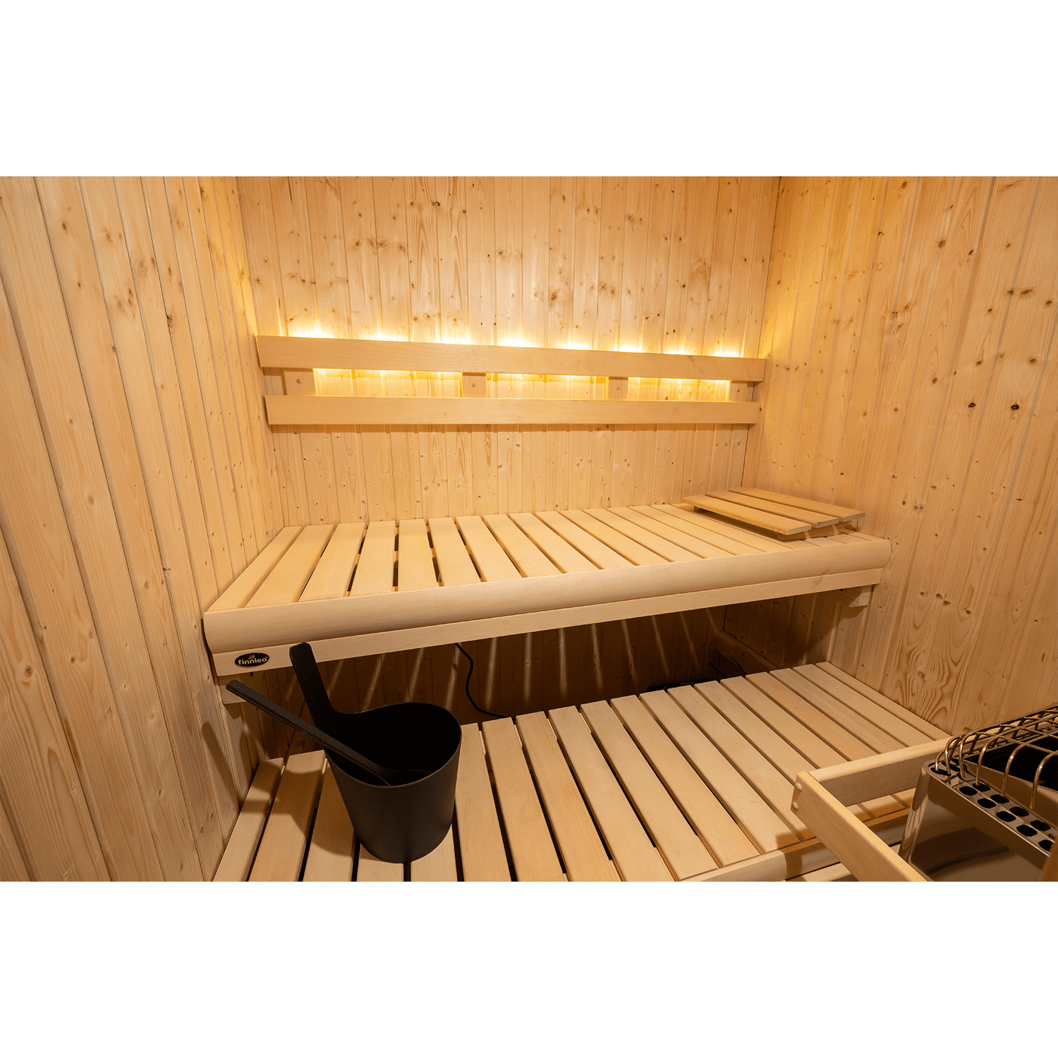 When floor-space is available, the NorthStar 56 is a great upgrade from the 4'x6' model. It's just the right amount of added space to spread out when saunaing solo, or that extra elbow room when seated next to one or maybe even 2 sauna companions - without breaking the budget. It's truly Finnish in it's design, especially the space it offers for gathering friends or family together.
