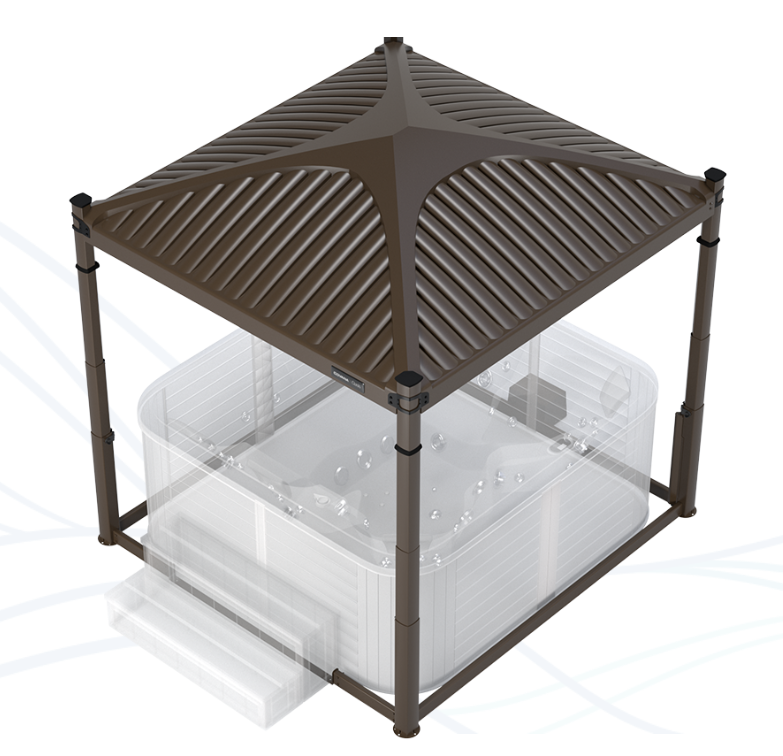 The flagship of our line, the Covana Oasis enhances your spa experience by immersing you in a world of relaxation. Its sloping roof protects you as it limits accumulations, while its ambient lighting warmly envelops you in an atmosphere that is as captivating as it is relaxing. Experience memorable moments, far from prying eyes, stress and bad weather.