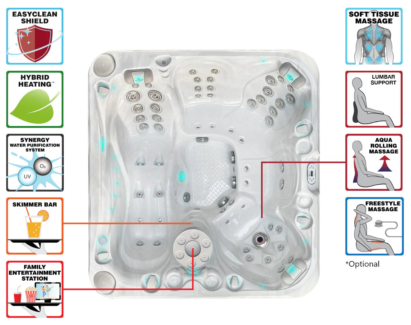 The Pleasure Spa is constructed to last a lifetime and was designed with exceptional attention to detail. Improved reclining capabilities, extra lumbar support, and updated massage functions all combine to make this fully-featured model the ultimate choice for personal therapy. Our innovative Aqua Rolling Massage is a great example. When on full power, it generates an intense massage stream that works its way up from the lower back all the way up to the base of the neck. The intensity of this massage feature is adjustable. Standard features include soft air massage, StarBrite LED lighting, and an Aromatherapy System, and all Signature Series Spas come with an MP3 system complete with integral speakers mounted in the spa shell. It isn't surprising that the Pleasure Spa has earned the distinction of being one of our most popular models.