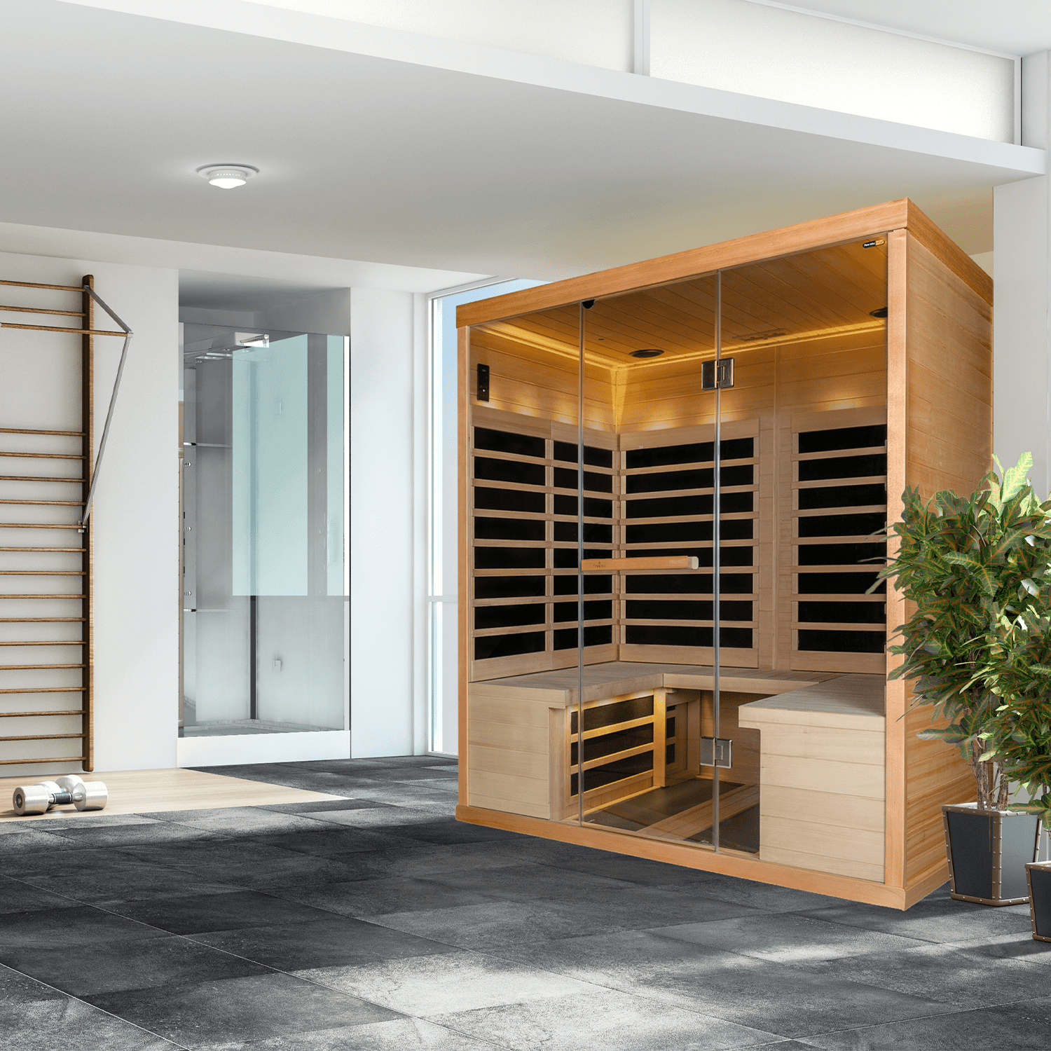 - Canadian Hemlock Inside & Out: Responsibly harvested sauna wood sealed with bio-friendly furniture grade finish.