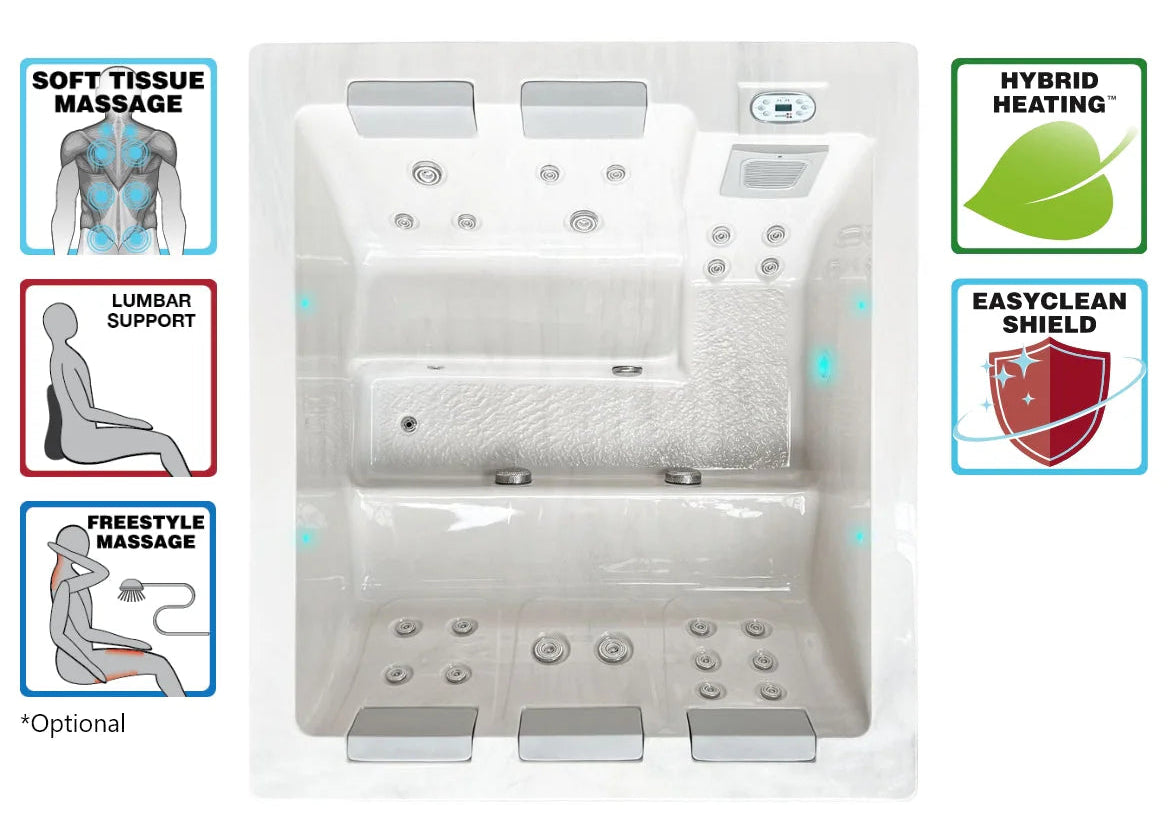 With its rectangular shape and sleek lines, the Serene 5 provides a beautiful modern design with an elegant appearance. It has a subtle backlight behind the cushions and around the spa. This attractive spa offers the best in design and features and features Hybrid Heating™ to ensure your spa reaches optimal temperatures while saving you money.