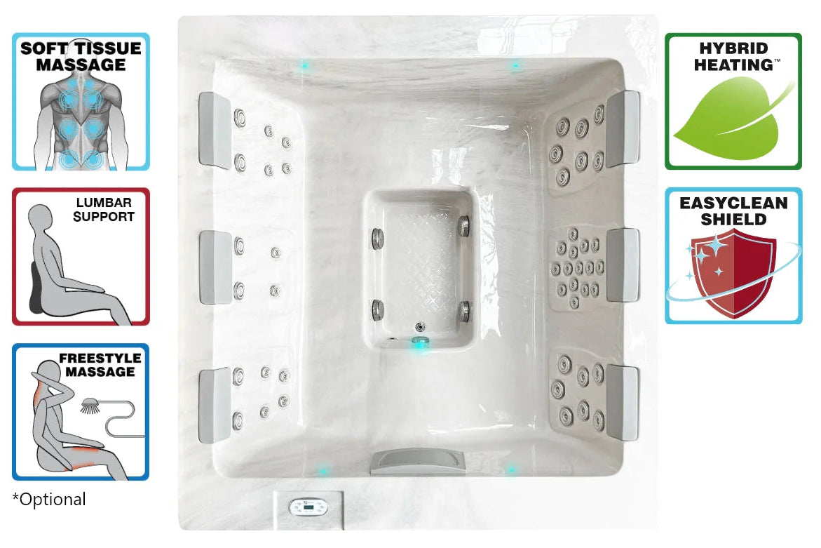 With its cubicle layout and geometric lines, the Serene 6 Spa has a clean and progressive design to complement elegant, modern tastes. It features subtle backlighting positioned behind the molded pillows and around the perimeter of the spa under the shell lip. This desirable spa represents the best in both design and function and comes with high-performance Hybrid Heating™ to help you achieve and maintain the desired temperature while saving energy.