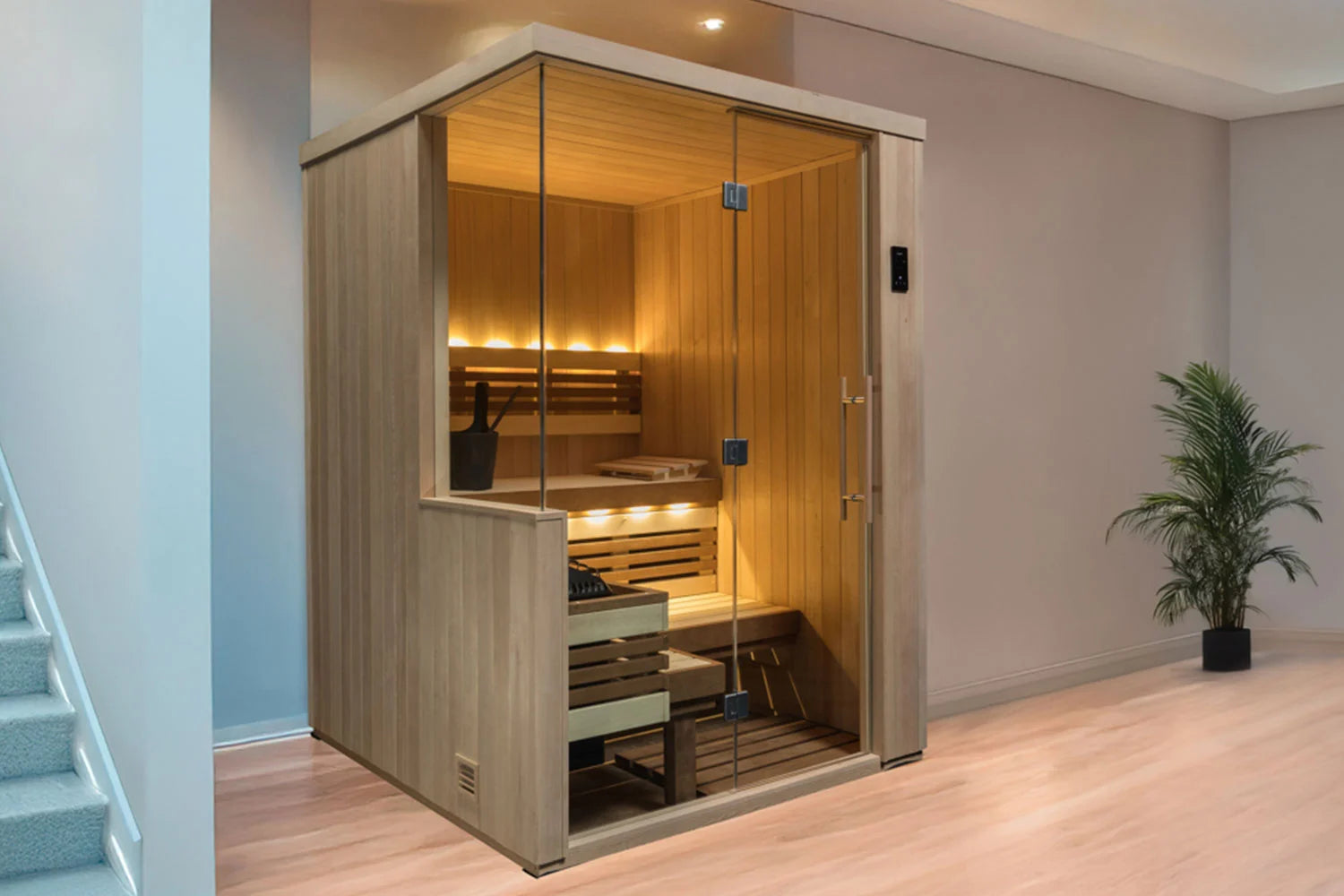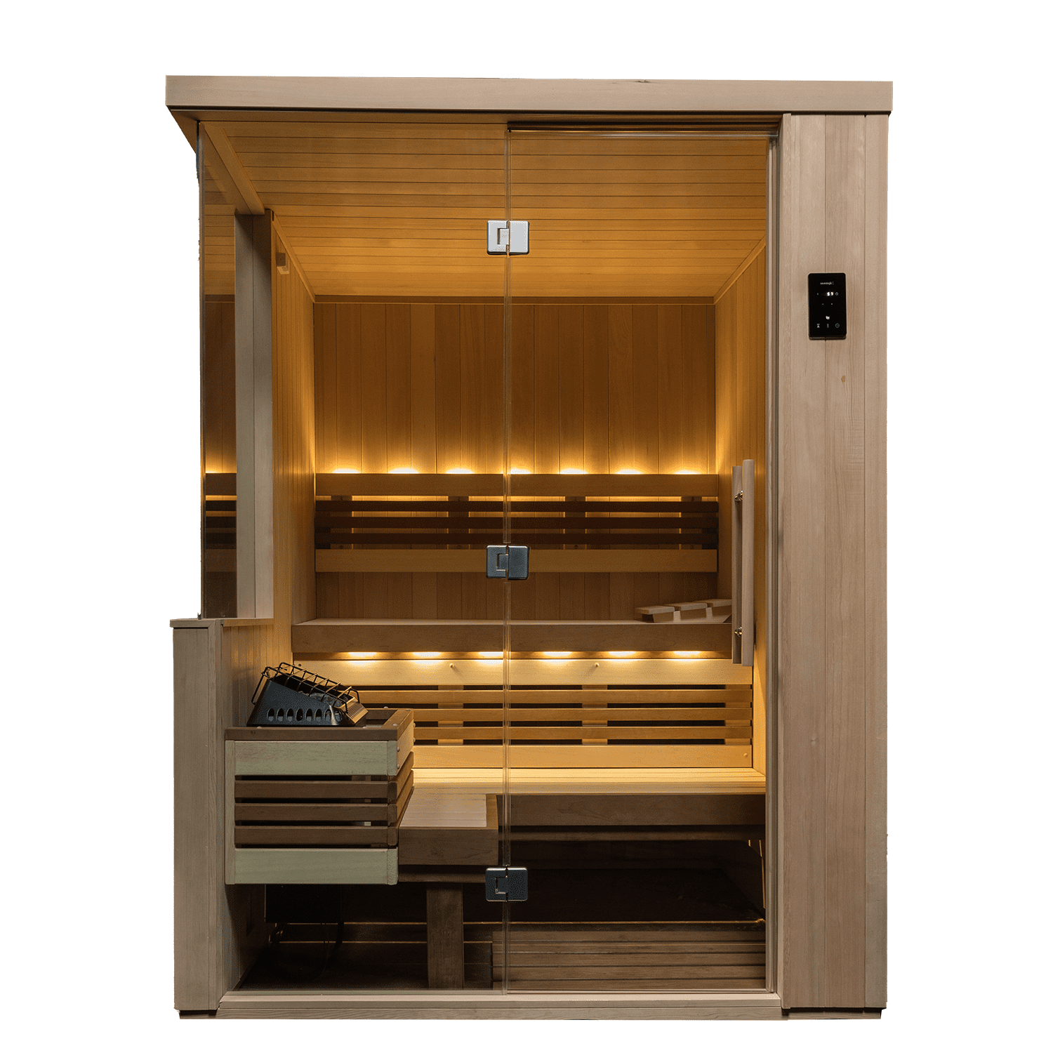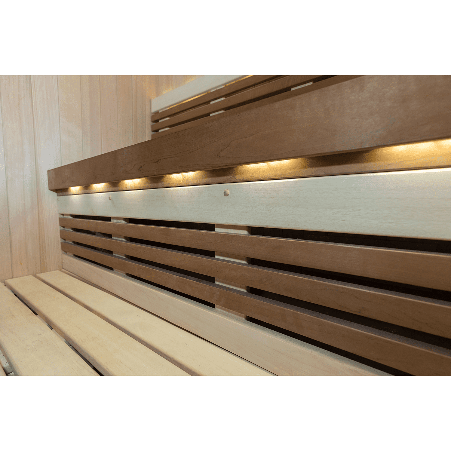 - Two-Toned Wood Accents: Providing a beautiful light & dark contrast inside the sauna.